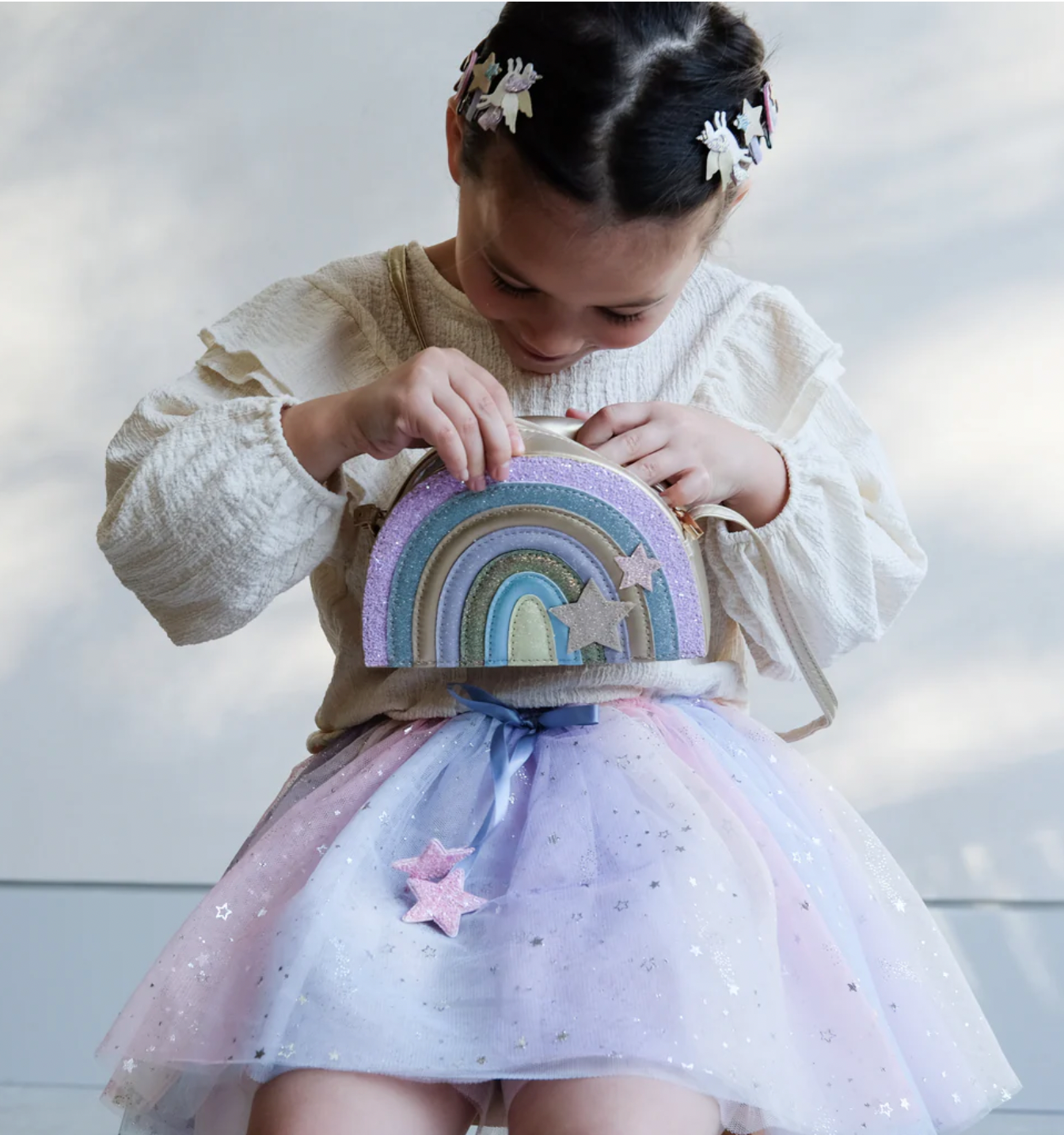 They'll be twirling out of this world with our celestial rainbow tutu! Perfect for parties, everyday fun, or just dreamy dress up days! Wear with our celestial rainbow cape for a truly dazzling rainbow look!