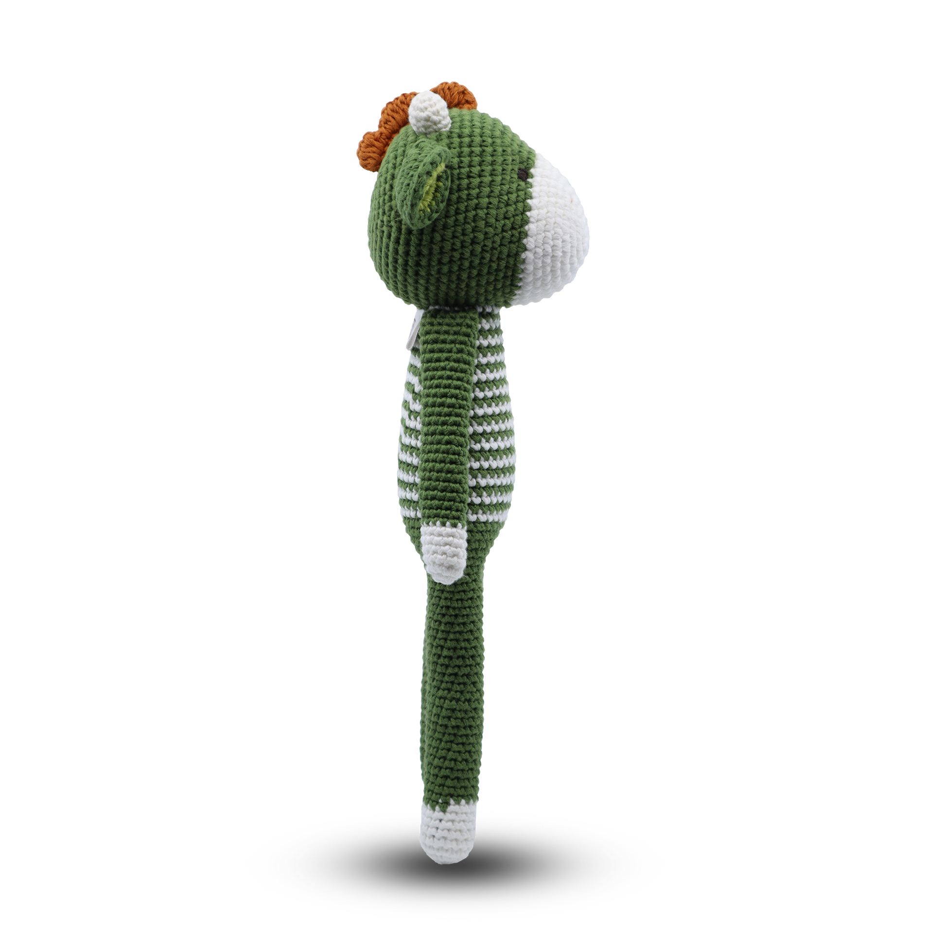 This handmade crochet dinosaur is tall and designed to be both adorable and adventurous. With its slim, flexible body and long limbs, your little one can pose it for fun, take it on adventures, or cuddle with it at night. Featuring a unique hand-stitched crochet design, complete with little spikes and cute ears, this green dinosaur is ready to bring joy to your child's playtime.
